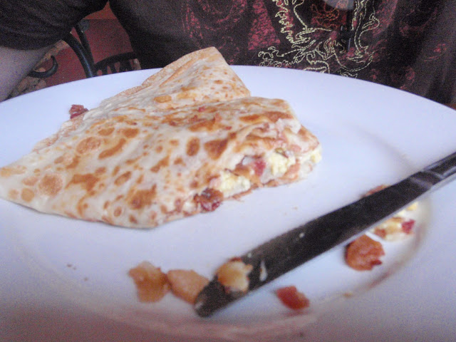 Thatboy's bacon, egg, and cheese crepe. Anyone noticing a trend here with bacon and eggs? I think Thatboy would live off of bacon if I'd let him.